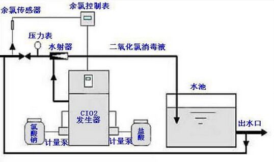 · 二氧化氯發(fā)生器應設斷流保護裝置,當一種藥液斷流時報警并自動停止該發(fā)生器的運行。